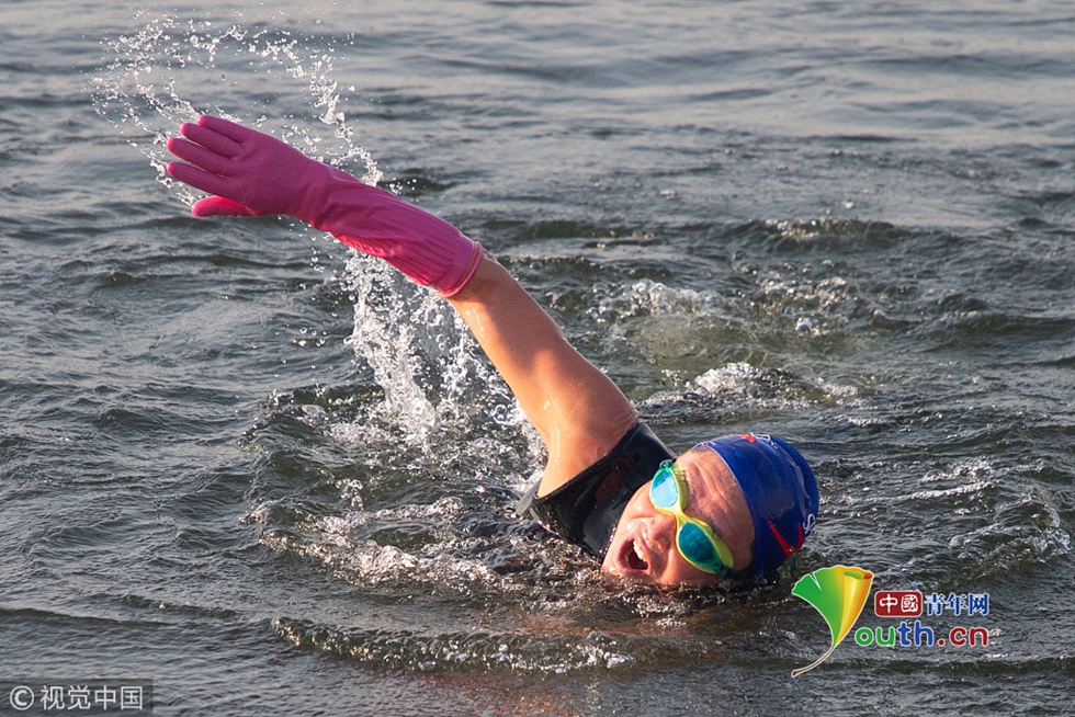 “我冬泳是從2002年開始的,當時是看電視上播放哈爾濱的冬泳比賽,我心想人家可以,我也能,就這樣開始了冬泳?!闭麄€冬季,張敏石幾乎每天都會來南湖游泳區(qū)鍛煉。