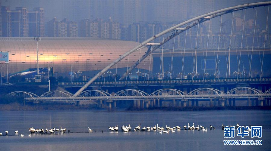 1月3日,白天鵝在三門峽黃河濕地棲息。 新華社記者朱祥攝