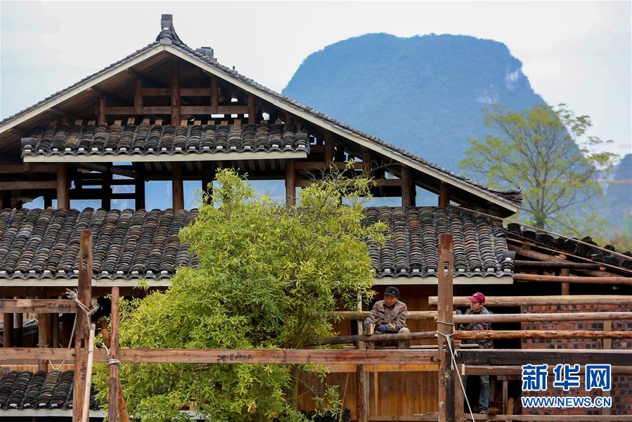 1月15日,工人在廣西融水苗族自治縣融水鎮(zhèn)夢(mèng)嗚苗寨建設(shè)房屋。