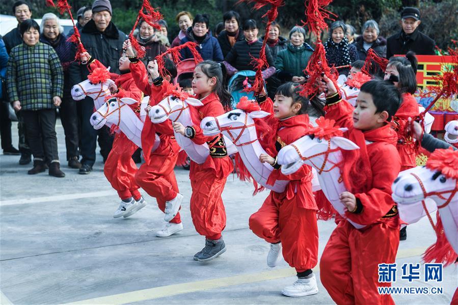 1月16日,新塘村村民觀看傳統(tǒng)非遺項目——下箬馬燈。下箬馬燈是發(fā)源于長興縣的民間舞蹈,距今已有1000多年歷史。 臨近春節(jié),浙江省長興縣開發(fā)區(qū)中心幼兒園的老師和孩子們來到長興縣太湖街道下屬的新塘村,為村民表演文藝節(jié)目,用喜慶的傳統(tǒng)舞蹈營造節(jié)日氣氛。另外孩子們還用紙盒、瓶子、彩色包裝紙等廢舊物品制作了環(huán)?;?,送給村民,倡導(dǎo)低碳環(huán)保的節(jié)日新風(fēng)。 新華社記者 徐昱 攝