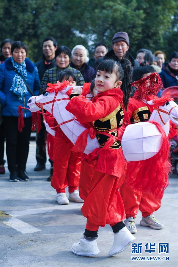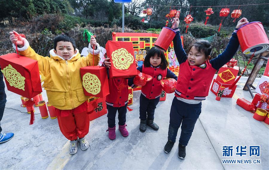 1月16日,孩子們?yōu)樾绿链宕迕癖硌輦鹘y(tǒng)非遺項目——下箬馬燈。下箬馬燈是發(fā)源于長興縣的民間舞蹈,距今已有1000多年歷史。 臨近春節(jié),浙江省長興縣開發(fā)區(qū)中心幼兒園的老師和孩子們來到長興縣太湖街道下屬的新塘村,為村民表演文藝節(jié)目,用喜慶的傳統(tǒng)舞蹈營造節(jié)日氣氛。另外孩子們還用紙盒、瓶子、彩色包裝紙等廢舊物品制作了環(huán)?;?,送給村民,倡導(dǎo)低碳環(huán)保的節(jié)日新風(fēng)。 新華社記者 徐昱 攝