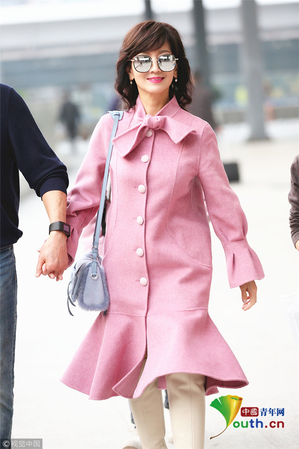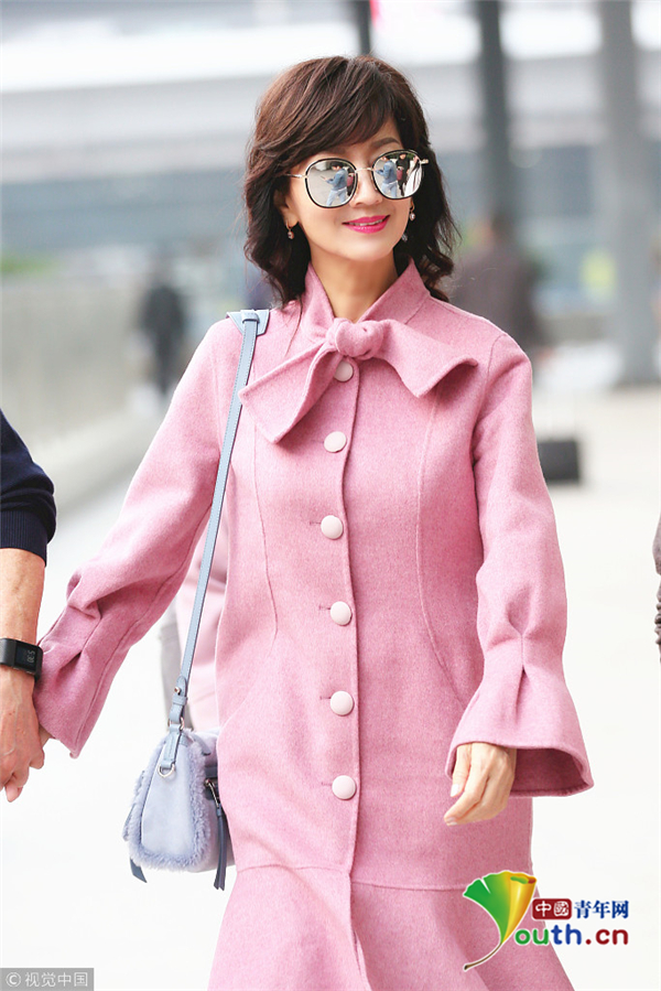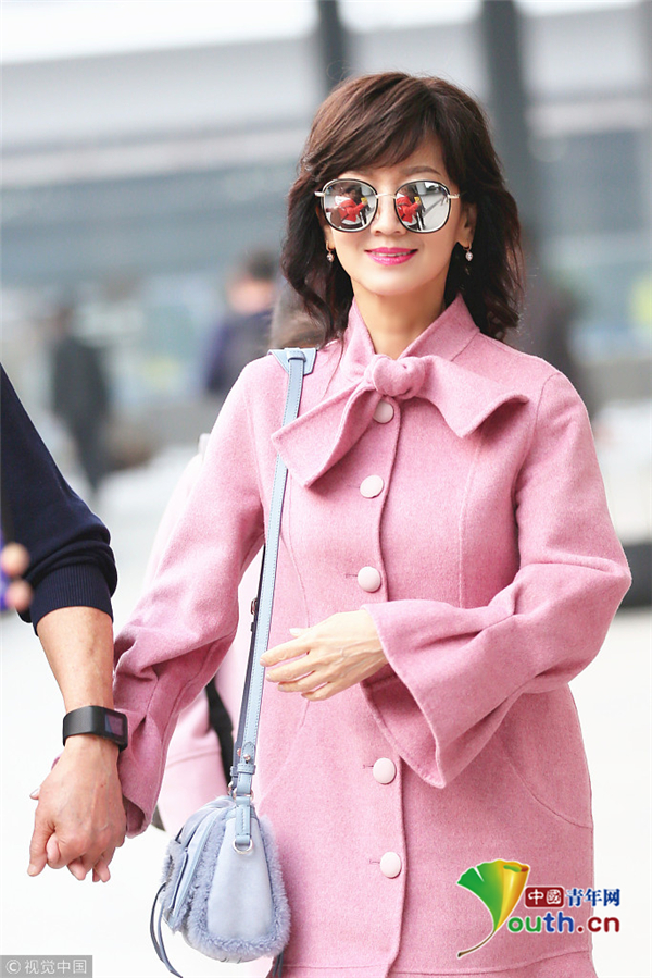 1月22日,廣東深圳,近日,趙雅芝與丈夫黃錦燊現(xiàn)身機(jī)場,黑超遮面的她身著粉色昵子魚尾大衣,氣質(zhì)超群,一路獲粉絲跟隨,共先生黃錦燊牽手同行。