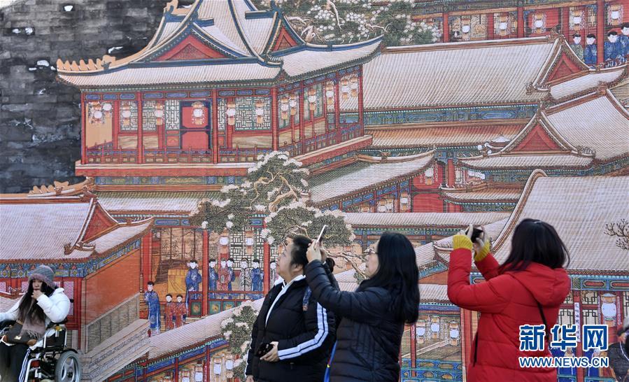 1月25日,游人在故宮內(nèi)拍攝古代宮廷過春節(jié)的繪畫。 春節(jié)將至,北京故宮博物院內(nèi)張燈結(jié)彩,到處懸掛著宮燈、萬壽燈、年畫、門神、福字等古代宮廷節(jié)日裝飾品,讓來自國(guó)內(nèi)外的游人感受到濃濃的年味。 新華社記者 李欣攝