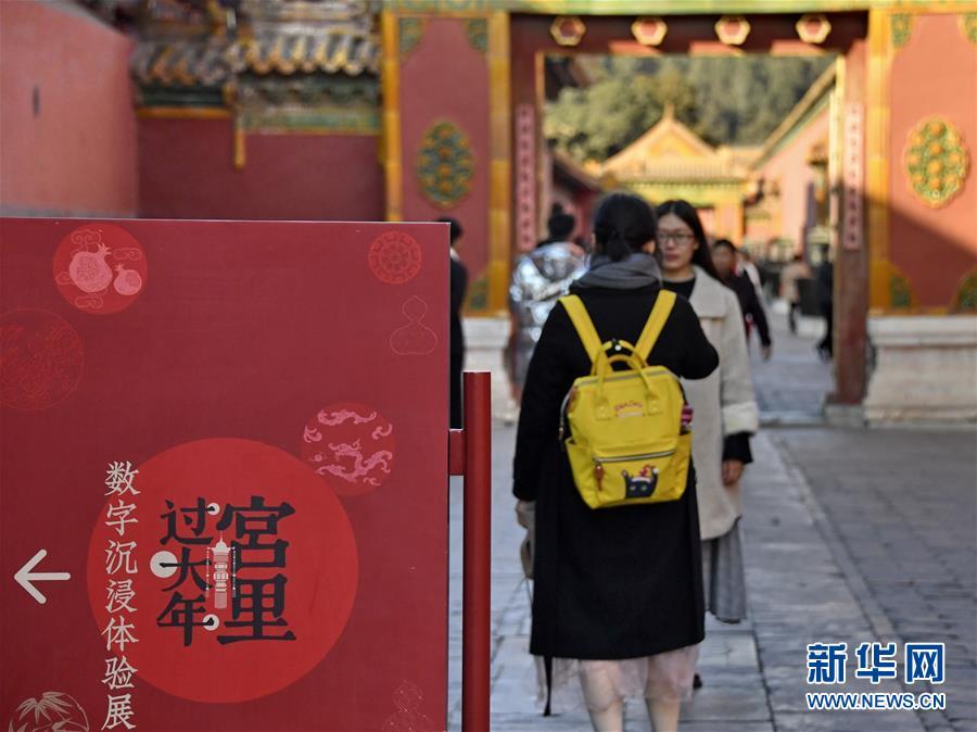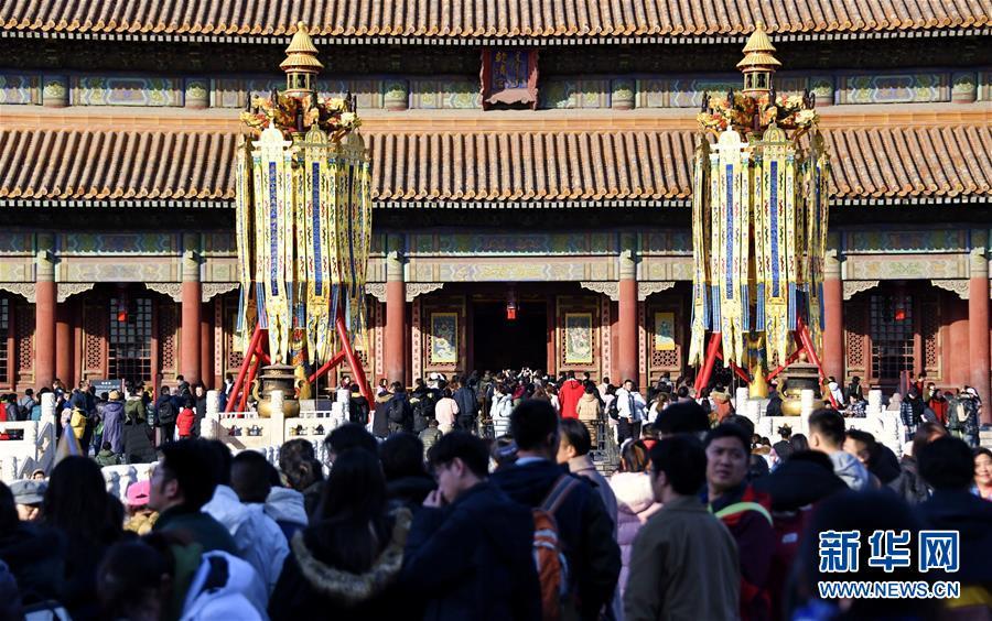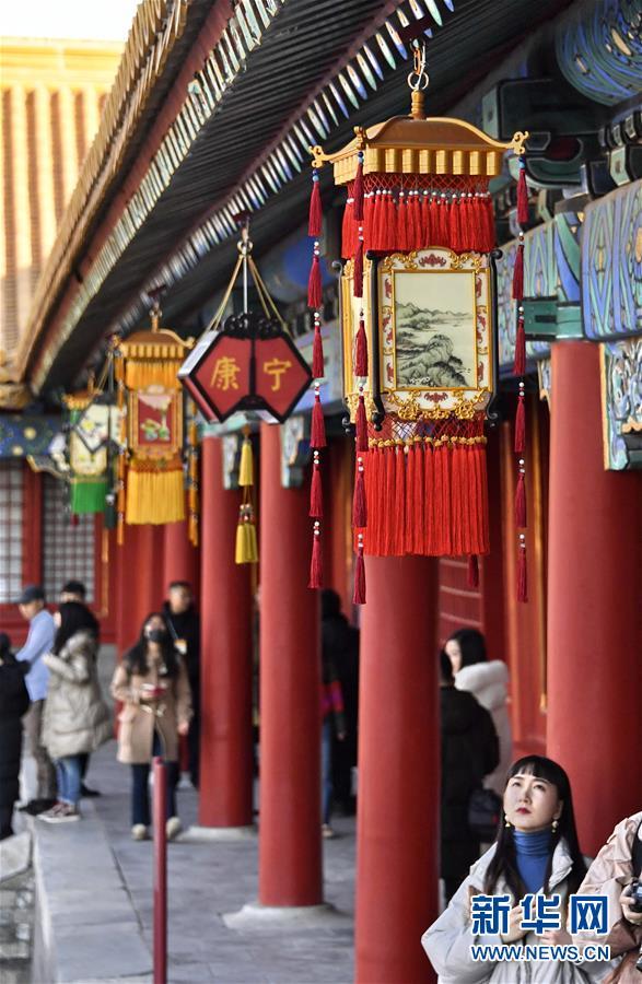 1月25日,游人在故宮內(nèi)參觀游覽。 春節(jié)將至,北京故宮博物院內(nèi)張燈結(jié)彩,到處懸掛著宮燈、萬壽燈、年畫、門神、福字等古代宮廷節(jié)日裝飾品,讓來自國(guó)內(nèi)外的游人感受到濃濃的年味。 新華社記者 李欣攝