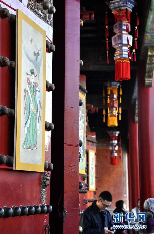 這是在故宮內(nèi)拍攝的古代宮廷節(jié)日裝飾品(1月25日攝)。 春節(jié)將至,北京故宮博物院內(nèi)張燈結(jié)彩,到處懸掛著宮燈、萬壽燈、年畫、門神、福字等古代宮廷節(jié)日裝飾品,讓來自國(guó)內(nèi)外的游人感受到濃濃的年味。 新華社記者 李欣攝