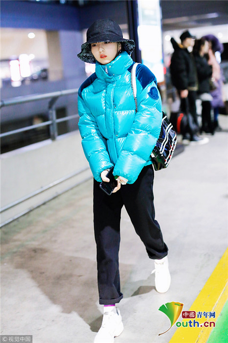 2019年1月31日,上海,張子楓現(xiàn)身機(jī)場(chǎng)。她身穿藍(lán)色羽絨服,戴著大檐帽也難擋好氣色,雪膚紅唇妝容精致展現(xiàn)女人味。