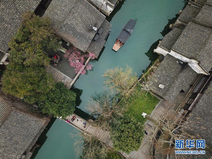 2月25日,烏鎮(zhèn)景區(qū)內(nèi)春意萌動(dòng)(無(wú)人機(jī)拍攝)。 隨著氣溫升高,浙江省桐鄉(xiāng)市烏鎮(zhèn)景區(qū)春意萌動(dòng)。 新華社記者翁忻旸攝