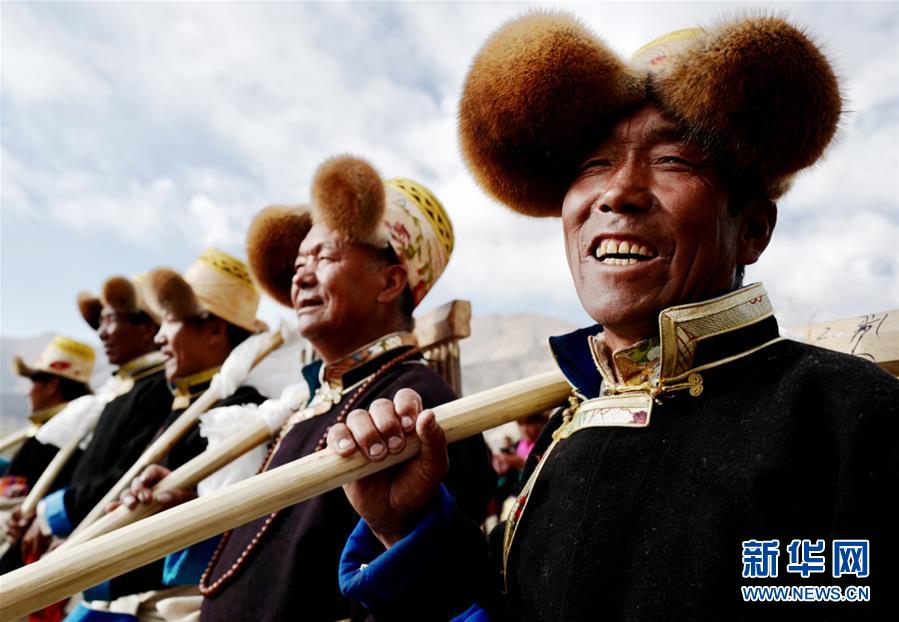 圖為白朗縣洛江鎮(zhèn)農(nóng)牧民進(jìn)行“賽?!被顒?dòng),只要農(nóng)牧民不從犁上掉下來(lái),便可以獲得一把象征著勞動(dòng)致富的鐵鍬。