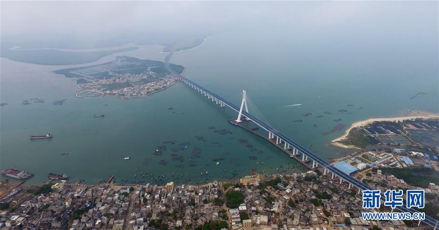 這是3月18日無人機(jī)拍攝的海南海文大橋。3月18日,中國首座跨越地震活動斷層的跨海大橋——海南海文大橋建成通車。海文大橋(原名鋪前大橋)連接海口市演豐鎮(zhèn)和文昌市鋪前鎮(zhèn),全長5.597公里,其中跨海大橋長約3.959公里。大橋通車后,從??诘轿牟伹版?zhèn)的路程將由原來的1小時30分鐘縮短至約20分鐘。 新華社記者郭程攝