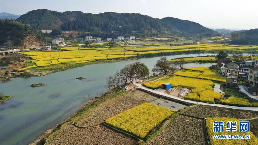3月20日在貴州錦屏縣新化鄉(xiāng)拍攝的春景(無人機拍攝)。春分將至,貴州各地成片的油菜花漸次綻放,如同金色的地毯鋪上云貴高原。 新華社記者 歐東衢 攝