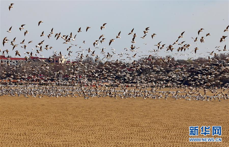 4月4日,一群候鳥在秦皇島市沿海濕地飛翔、休憩。近日,大批候鳥飛抵河北省秦皇島市沿海濕地,出現(xiàn)“萬(wàn)鳥臨?!逼嬗^。秦皇島沿海濕地鳥類食物豐富,每年春、秋兩季,大批候鳥遷徙經(jīng)過(guò)這里。新華社記者 楊世堯 攝