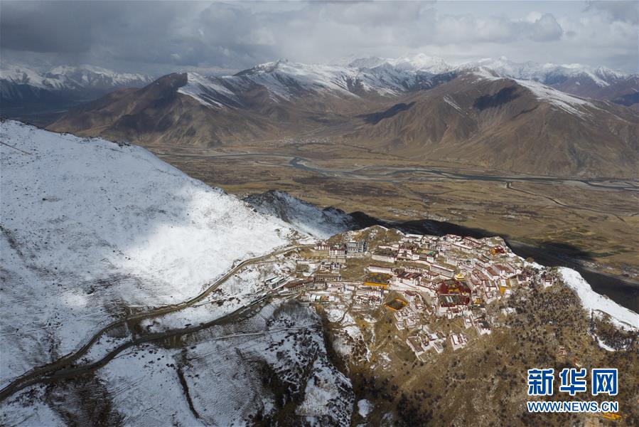 雪后的甘丹寺(4月8日無人機(jī)拍攝)。新華社記者普布扎西攝