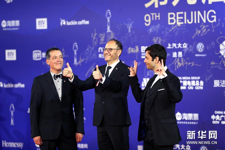 4月20日,電影《侍者》劇組成員亮相閉幕紅毯。 當(dāng)日,第九屆北京國際電影節(jié)在北京懷柔國家中影數(shù)字制作基地閉幕。 新華社記者 孟永民 攝