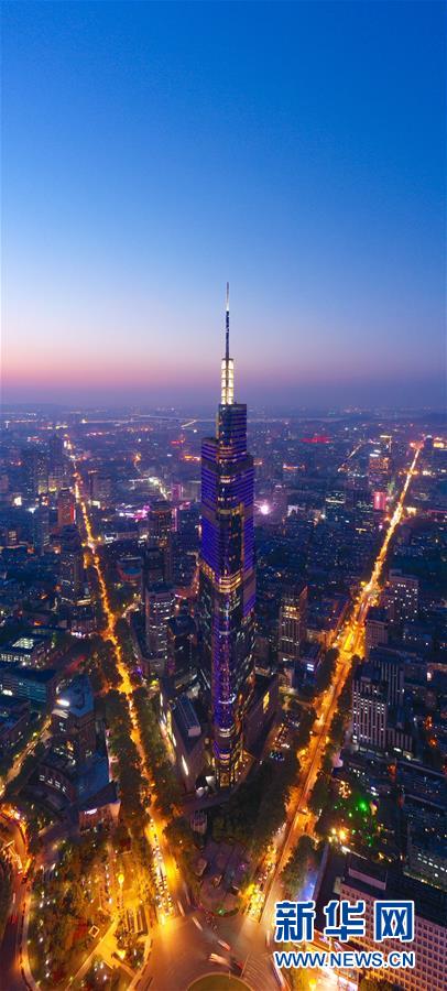 這是4月17日無人機拍攝的南京紫峰大廈和城市夜景。 新華社記者 李博 攝