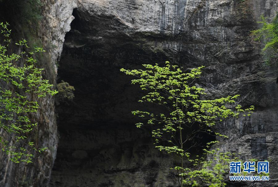 地洞河天坑的巖洞(4月22日攝)。位于陜西省漢中市寧強縣的地洞河天坑,是禪家?guī)r天坑群中規(guī)模最大的一處天坑,坑內(nèi)分布有石鐘乳、石筍,具有極高的地質(zhì)研究價值。 新華社記者 張博文 攝