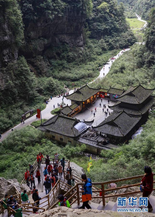 游客在天生三橋景區(qū)游覽(3月27日攝)。 隨著天氣轉(zhuǎn)暖,重慶武隆天生三橋景區(qū)風景如畫,氣勢磅礴的天生石橋和綠意盎然的山林相映成趣,吸引眾多游客前來踏春賞景。 新華社記者劉潺攝