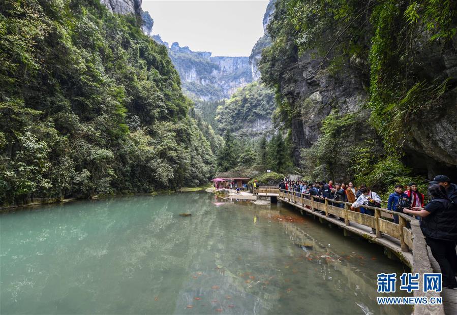 游客在天生三橋景區(qū)游覽(3月27日攝)。 隨著天氣轉暖,重慶武隆天生三橋景區(qū)風景如畫,氣勢磅礴的天生石橋和綠意盎然的山林相映成趣,吸引眾多游客前來踏春賞景。 新華社記者劉潺攝