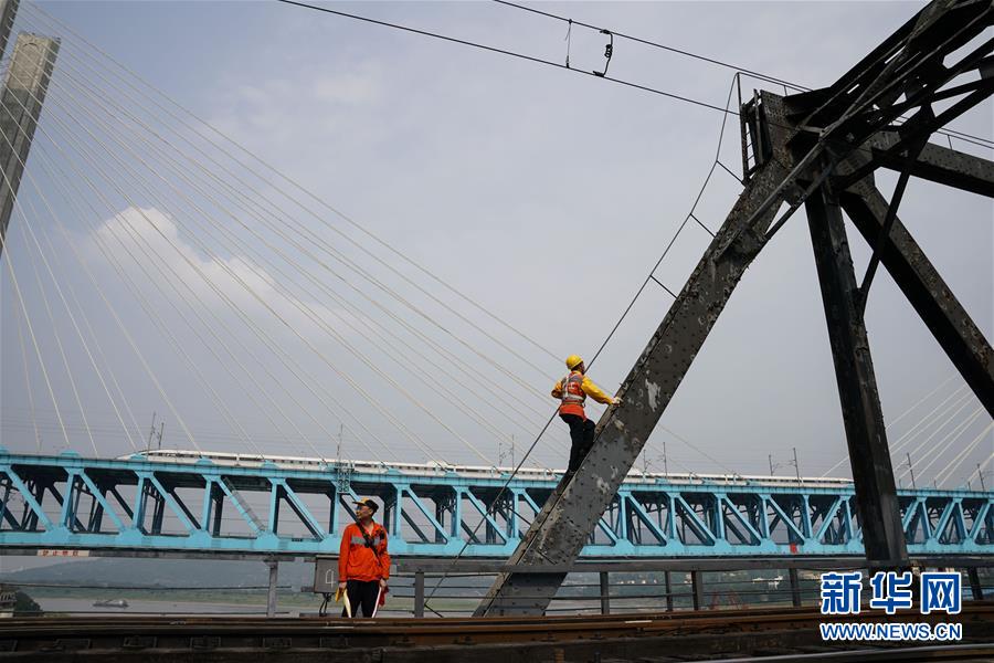 中國鐵路成都局有限公司重慶工務(wù)段的巡檢班組在白沙沱長江大橋上等待機(jī)車通過后繼續(xù)作業(yè)(4月23日攝)。 4月23日下午5點(diǎn)40分,隨著重慶白沙沱長江大橋通行的最后一列客運(yùn)列車順利通過,這座“服役”了59年的重慶首座長江大橋進(jìn)入“退役”倒計(jì)時(shí)。4月24日后,所有列車將改線經(jīng)距白沙沱長江大橋約100米的新白沙沱長江特大橋通行,新橋“接力”老橋,運(yùn)輸能力將得到大幅提升。 白沙沱長江大橋于1958年開工,1960年通過首趟列車,是繼武漢長江大橋之后的第二座長江大橋。 新華社記者 劉潺 攝