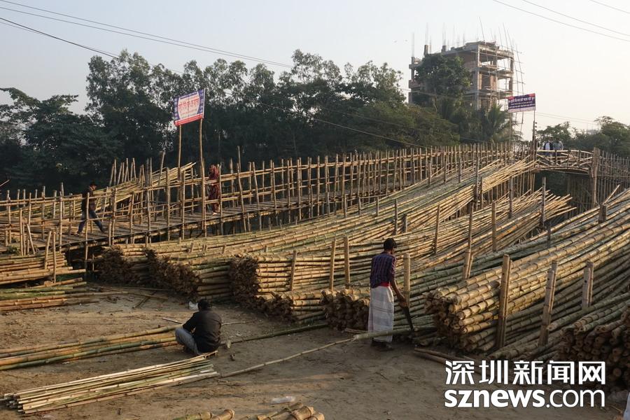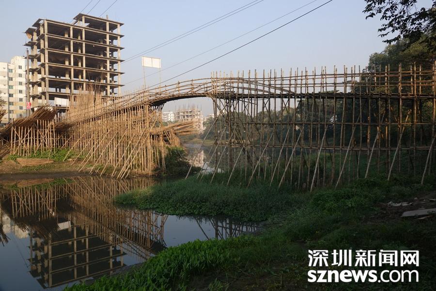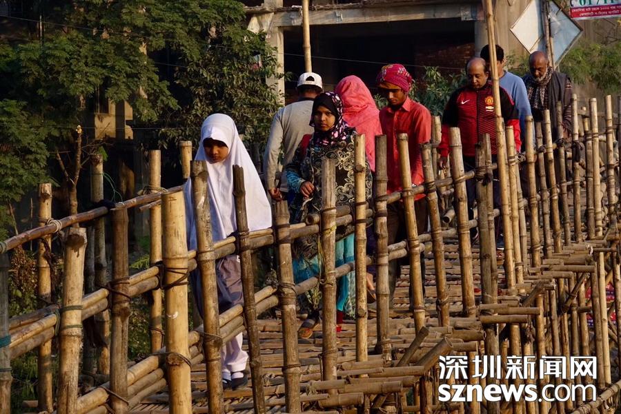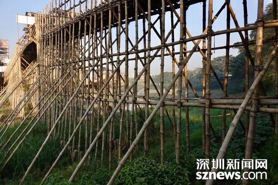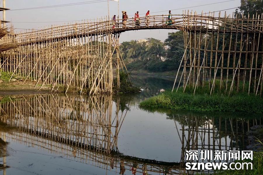 孟加拉國的大多數(shù)國土為低海拔平原,多洪水,每到雨季,各地一片汪洋,居住在地勢(shì)較高處的居民與外界和親友的聯(lián)系依賴就地取材、造價(jià)低廉的竹橋。李仁奇攝