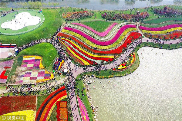 2019年4月6日,江蘇鹽城,大豐荷蘭花海景區(qū),人們在賞花游玩,盡享春光。