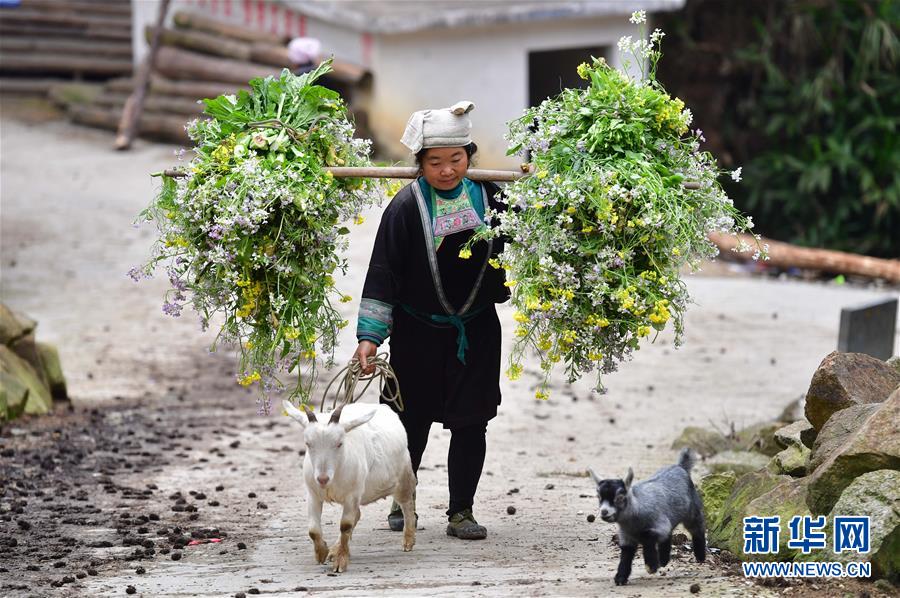 在黔桂烏英苗寨,村民勞作歸來(3月26日攝)。 新華社記者 黃孝邦 攝