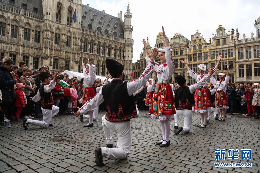 4月28日,在比利時(shí)布魯塞爾大廣場(chǎng),演員表演保加利亞的民族舞蹈。 當(dāng)日,來自歐洲多個(gè)國(guó)家的表演者在比利時(shí)布魯塞爾大廣場(chǎng)載歌載舞,慶祝為期五天的2019年巴爾干文化藝術(shù)節(jié)圓滿落幕。該文化藝術(shù)節(jié)旨在用音樂、舞蹈、文學(xué)、街頭藝術(shù)等方式向公眾展現(xiàn)東南歐巴爾干半島地區(qū)的民族文化風(fēng)情。 新華社記者鄭煥松攝