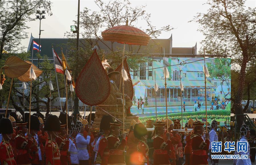5月5日,泰國國王瑪哈·哇集拉隆功參加加冕典禮巡游。 新華社記者 張可任 攝