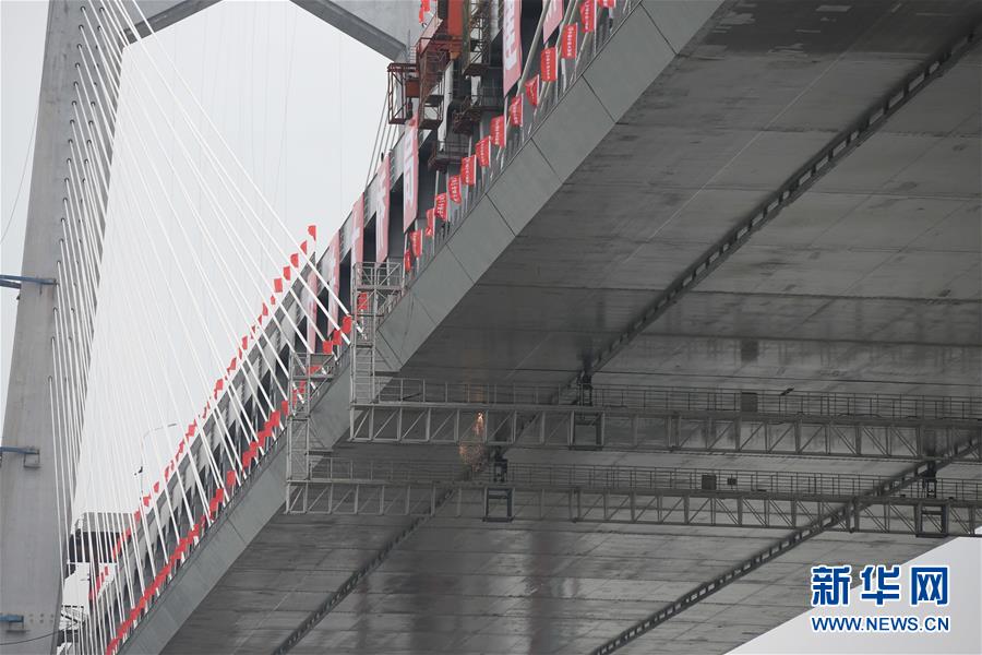 商合杭鐵路蕪湖長江公鐵大橋合龍現(xiàn)場(4月26日攝)。
