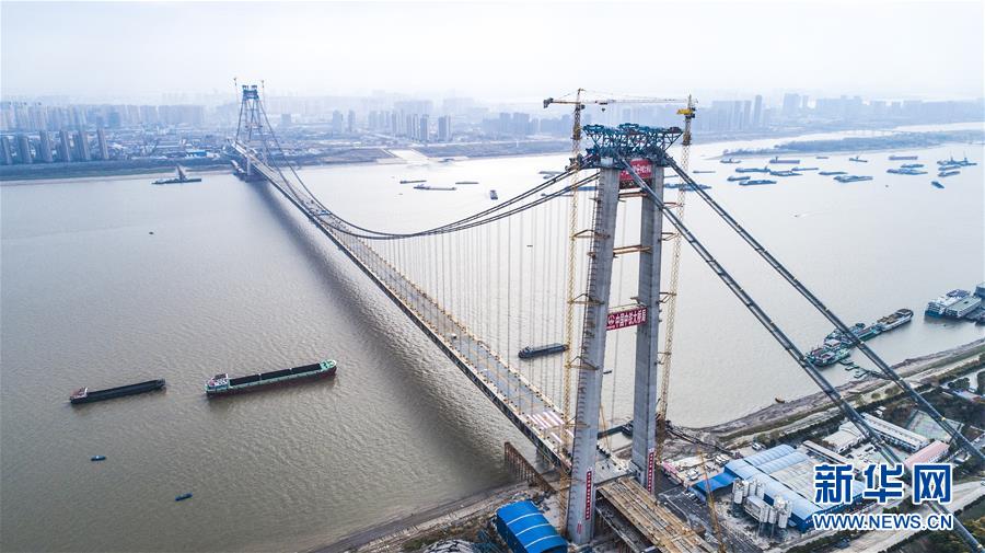 當日,隨著最后一節(jié)鋼梁吊裝到位,由中鐵大橋院設計、中鐵大橋局施工的武漢楊泗港長江大橋順利合龍,標志著這座世界最大跨度雙層公路懸索橋主體工程完工,進入橋面鋪裝階段。 武漢楊泗港長江大橋是武漢市內(nèi)建設的第十座長江大橋,也是長江上首座雙層公路大橋。 新華社記者 肖藝九 攝