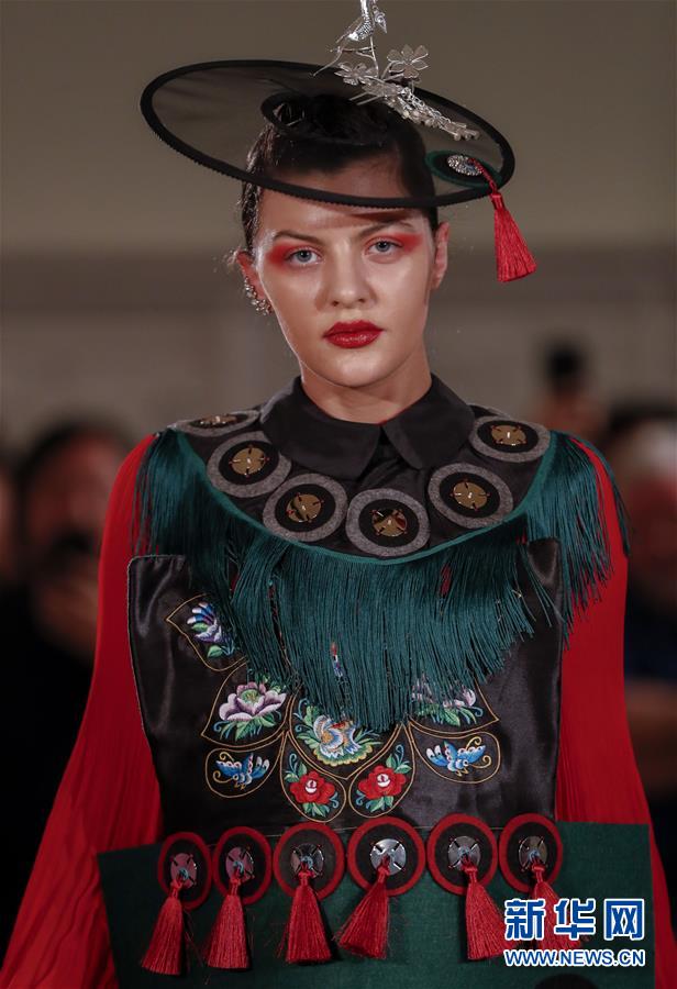 5月8日,一名模特在英國倫敦走秀。 由浙江省文化和旅游廳舉辦的浙江傳統(tǒng)工藝創(chuàng)新展8日在倫敦開幕。為期4天的展覽是第五屆倫敦手工藝周的重要活動之一。 新華社記者 韓巖 攝