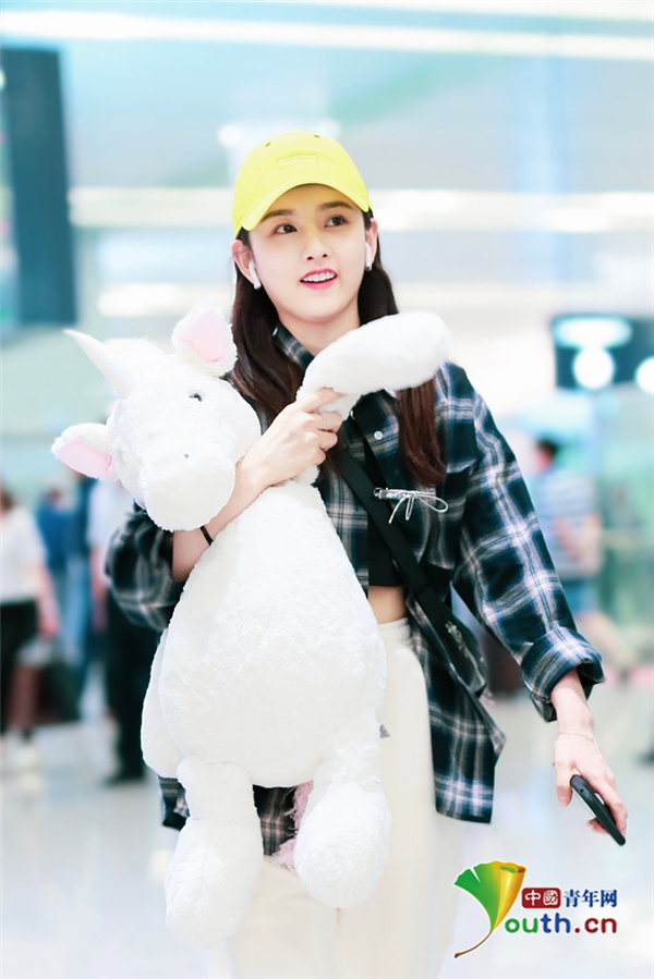 2019年5月12日,北京,宋祖兒現(xiàn)身機(jī)場。她穿格子襯衫戴小黃帽揮手大步走,元氣少女活力滿滿,抱玩偶變身獨角獸女孩童趣十足超可愛。