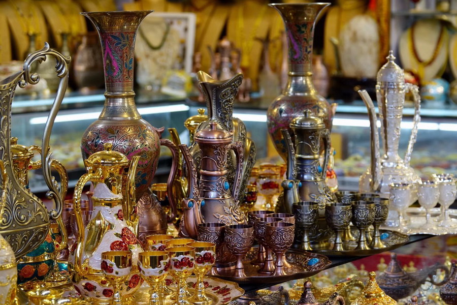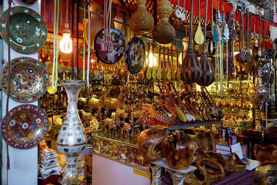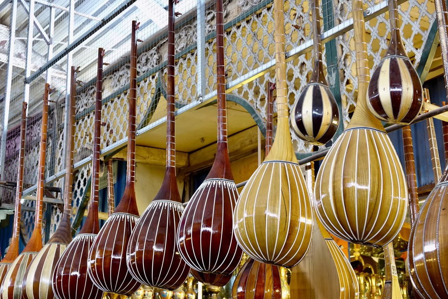 兩千多年前,這里是古疏勒國(guó)王宮所在地,從500多年前建立艾提尕爾清真寺起始,吾斯塘博依街逐漸成為一條喧鬧繁華的主街,匯聚了當(dāng)?shù)刈畛錾哪芄で山?,是名副其?shí)的手工藝品一條街。李仁奇 攝