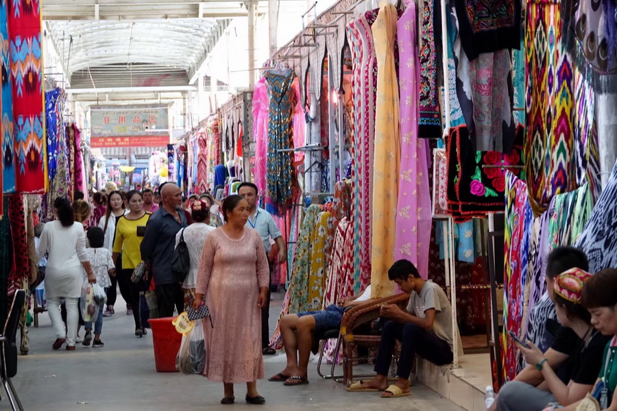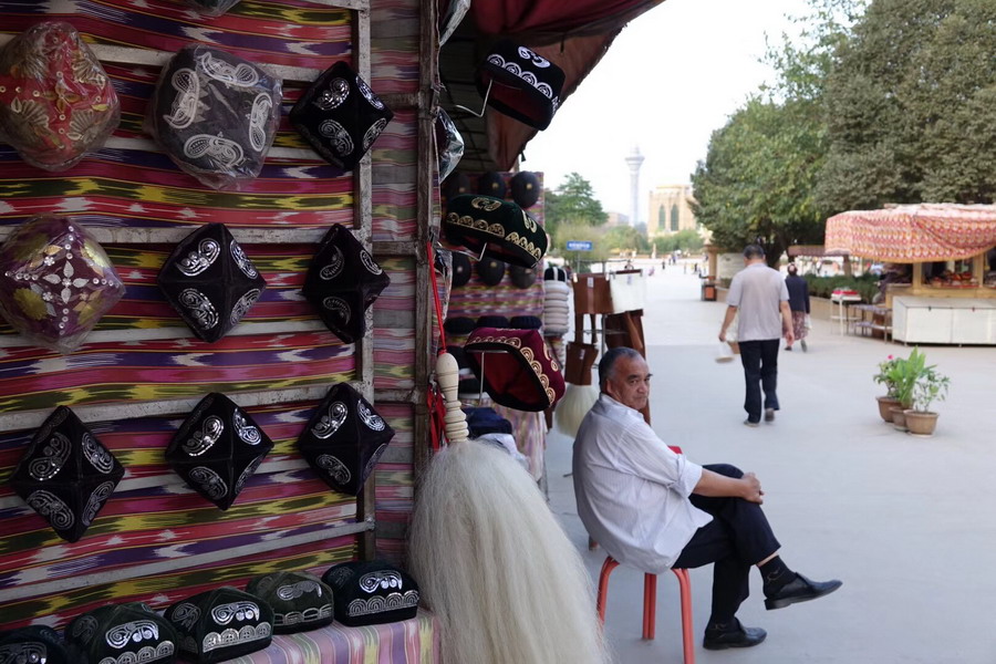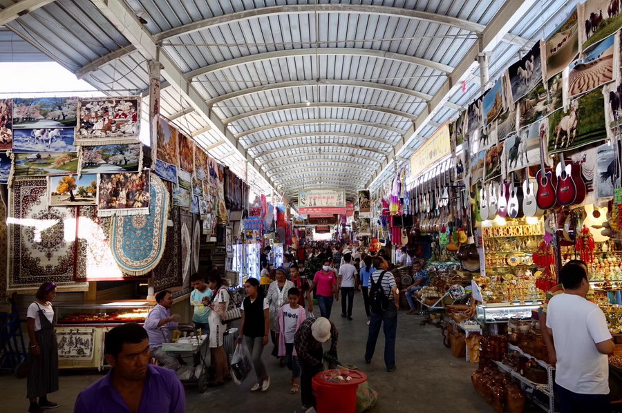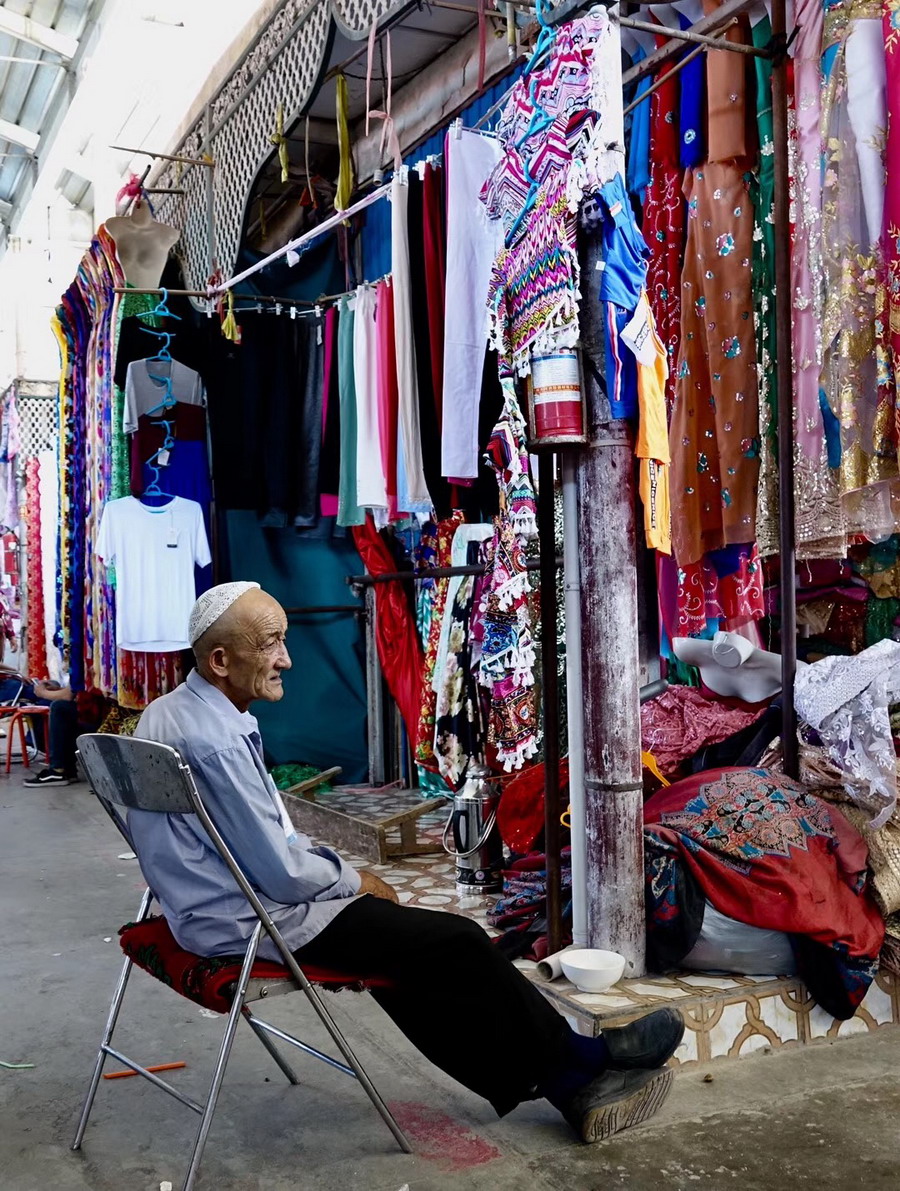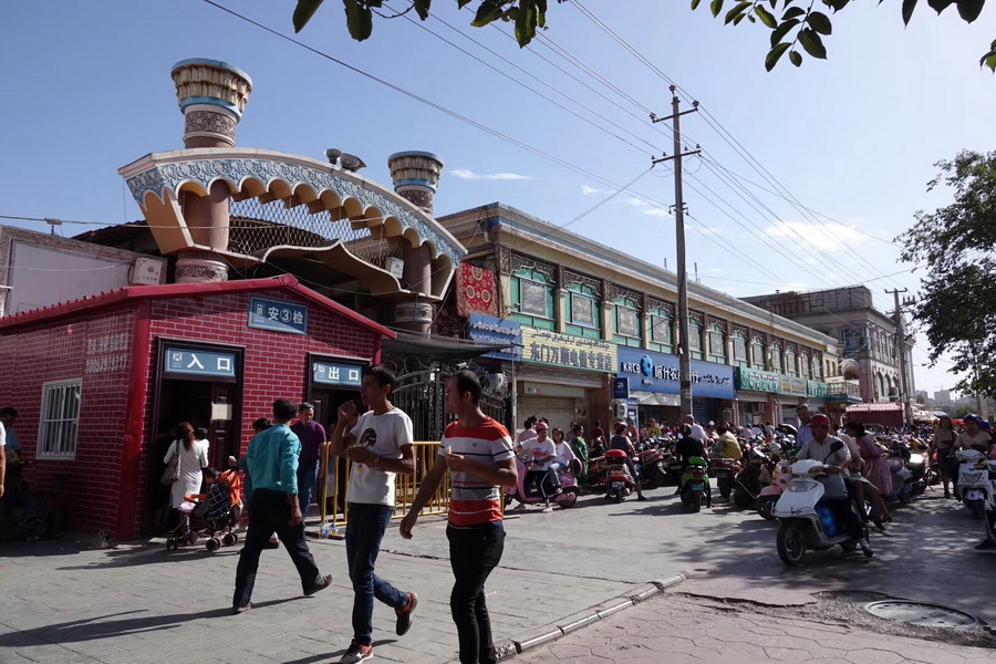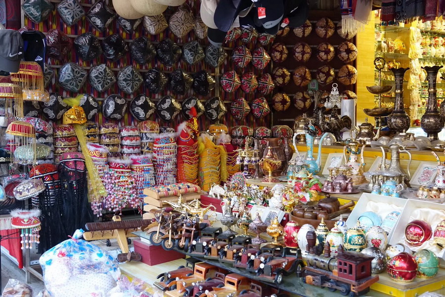 已有2000多年歷史,古代是亞洲最大的集市?,F(xiàn)在的大巴扎占地250畝,內(nèi)設(shè)21個(gè)專(zhuān)業(yè)市場(chǎng),5000多個(gè)攤位,每天人流量達(dá)10萬(wàn)以上,是我國(guó)西北地區(qū)最大的國(guó)際貿(mào)易市場(chǎng)。李仁奇 攝