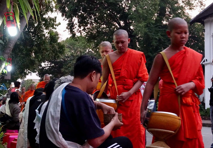 隨著旅游業(yè)的發(fā)展,現(xiàn)在游客們也都參與到布施活動中。僧侶們一直保持著依靠清晨化緣得來的食物充饑的習(xí)俗,多余的食物會用于慈善活動。