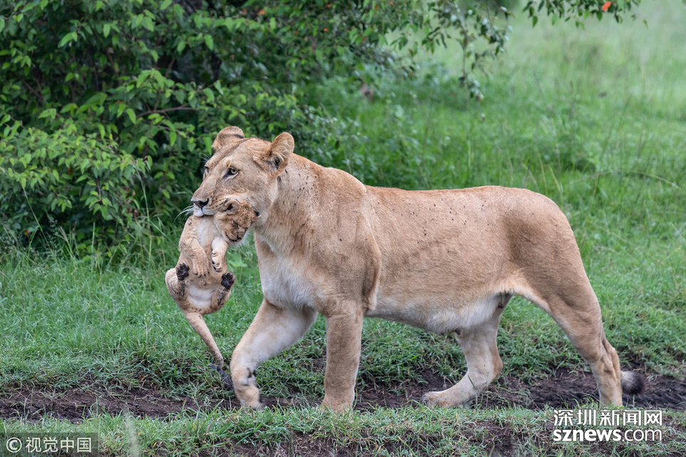 深圳新聞網(wǎng)訊 英國野生動(dòng)物攝影師Paul Goldstein在肯尼亞的馬賽馬拉拍到了一頭小獅子被媽媽教訓(xùn)的場(chǎng)面。畫面中,小獅子正歡快地在草叢穿行,任憑媽媽喚了幾次都無動(dòng)于衷。為了把小獅子帶到安全地帶,母獅咬住小獅子的頸部,霸氣地將其叼在嘴巴里,小獅子一下安分起來,任由母獅帶著活動(dòng)。Paul說:“把人類的情感和表達(dá)方式加給動(dòng)物是不對(duì)的,但毫無疑問,這位母親對(duì)小獅子的調(diào)皮很不滿意。它喚了幾次,幼崽都拒絕服從它的命令。這個(gè)地方前一晚下了雨,母獅一天的大部分時(shí)間都會(huì)盯緊自己的孩子,避免它們?cè)庥鑫kU(xiǎn),而一直呆在潮濕的灌木叢中,又是這些小家伙不喜歡的。最終,母獅走向小獅子,直接叼起來放回了灌木叢里。”