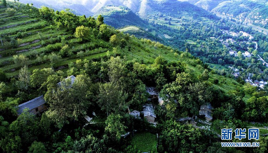 掩映在大山之中的石板房古村落,人去房空(8月7日無(wú)人機(jī)拍攝)。 新華社記者陶明攝