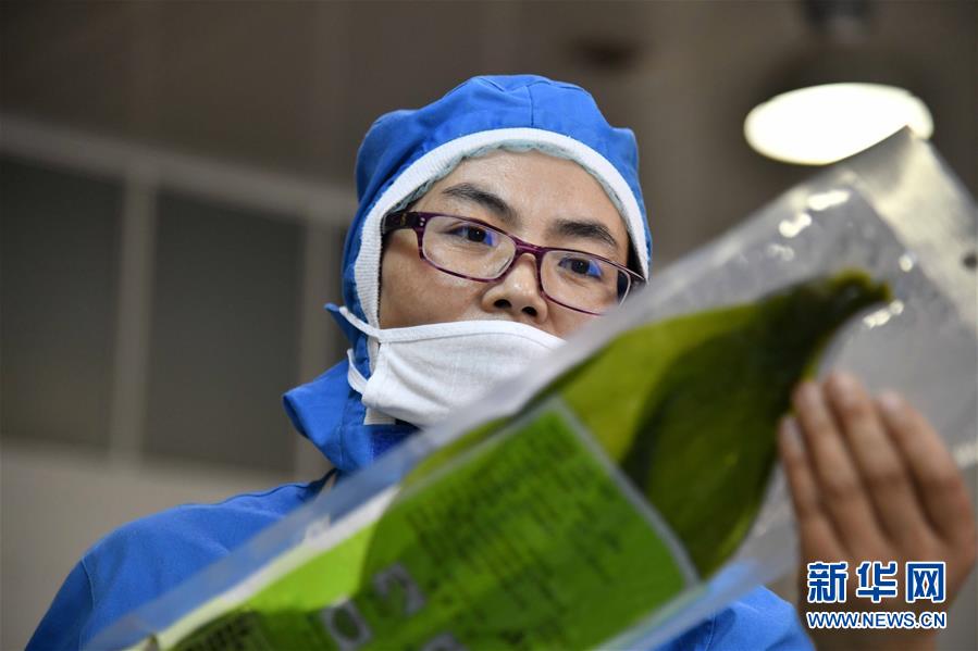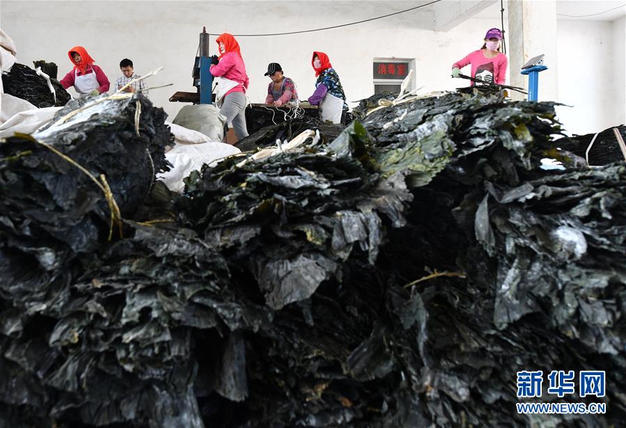 4月10日,霞浦縣長春鎮(zhèn)埕塢村一家海帶加工廠內(nèi),工人在搬運剛收獲的海帶。近日,福建省寧德市霞浦縣30余萬畝養(yǎng)殖海帶進入收獲季節(jié),當(dāng)?shù)仞B(yǎng)殖戶搶抓晴好天氣,收獲海帶。海帶養(yǎng)殖是霞浦縣群眾增收致富的支柱產(chǎn)業(yè)。2018年該縣海帶產(chǎn)量14萬余噸。新華社記者 姜克紅 攝