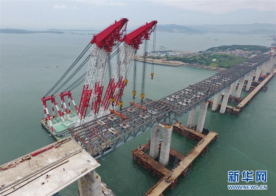 福平鐵路平潭海峽公鐵兩用大橋元洪航道橋主橋正在合龍(6月5日攝)。 新華社記者 林善傳 攝