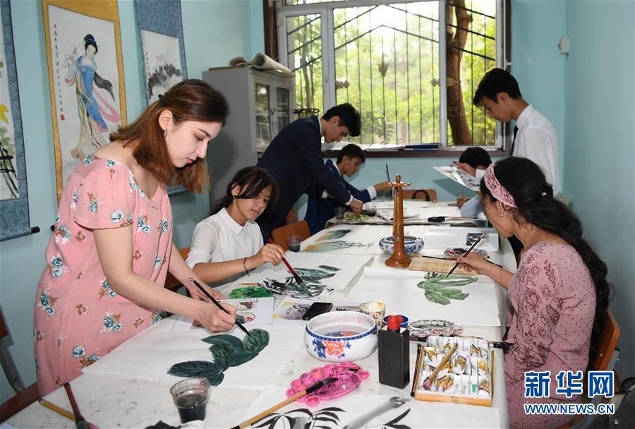 6月10日,在塔吉克斯坦首都杜尚別,學(xué)生在塔吉克斯坦民族大學(xué)孔子學(xué)院畫畫。 塔吉克斯坦共和國,簡稱塔吉克斯坦,是位于中亞東南部的內(nèi)陸國家。塔吉克斯坦是多民族國家,全國共有86個(gè)民族,人口約910萬。 新華社記者沙達(dá)提攝