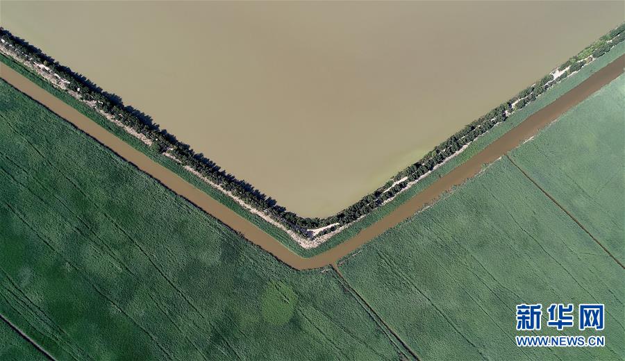 這是天津市寧河區(qū)七里海濕地局部景觀(6月22日無人機拍攝)。新華社記者 岳月偉 攝