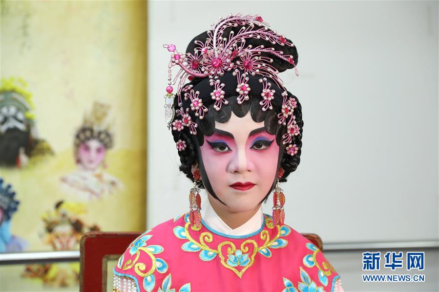 粵劇小演員陸瑞徽飾演折子戲《艷曲醉周郎》里的小喬(6月8日攝)。 聲輝粵劇推廣協(xié)會(huì)成立于2003年,是香港重要粵劇藝術(shù)團(tuán)體之一,致力于向青少年推廣粵劇。協(xié)會(huì)目前有兩個(gè)初班,3個(gè)中班,一個(gè)青少年班。粵劇又稱“廣東大戲”,表演技藝包括“唱做念打”,即唱功、身段、臺(tái)詞、武打,主要流行于廣東、廣西和香港、澳門等地區(qū)。2009年,粵劇被列入聯(lián)合國(guó)教科文組織人類非物質(zhì)文化遺產(chǎn)代表作名錄,今年正逢十周年。 新華社記者 吳曉初 攝