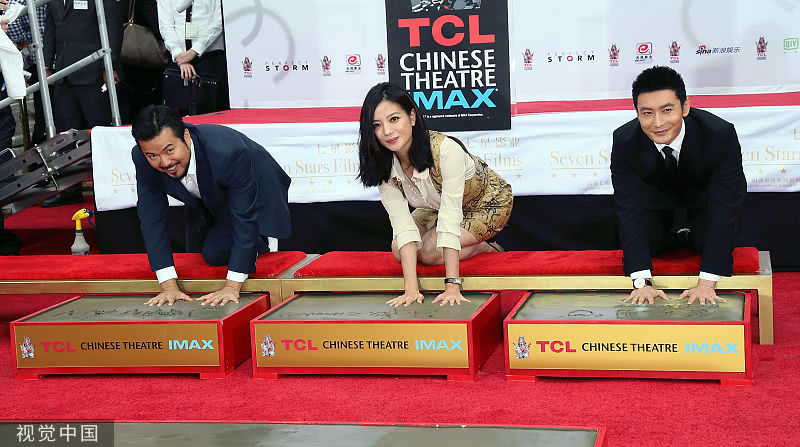 趙薇和黃曉明在好萊塢TCL中國大劇院門前按下象征世界電影人無上榮譽的手印,在該地留印的華人明星只有三個,分別是成龍、吳宇森和馮小剛。