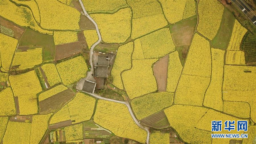這是黟縣盧村的油菜花田(3月28日無(wú)人機(jī)拍攝)。近日,安徽省黃山市黟縣的油菜花迎來(lái)盛花期。金黃的油菜花與屋舍、道路等形成一幅幅美麗的鄉(xiāng)村畫(huà)卷,引人入勝。 新華社記者張端攝