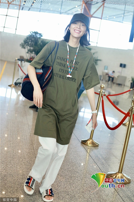 2019年7月23日,北京,劉雯現(xiàn)身機(jī)場。她頭戴棒球帽,身穿oversize上衣腳踩拖鞋,走慵懶隨性風(fēng),盡顯超模氣場,露出招牌笑容親切又有感染力。