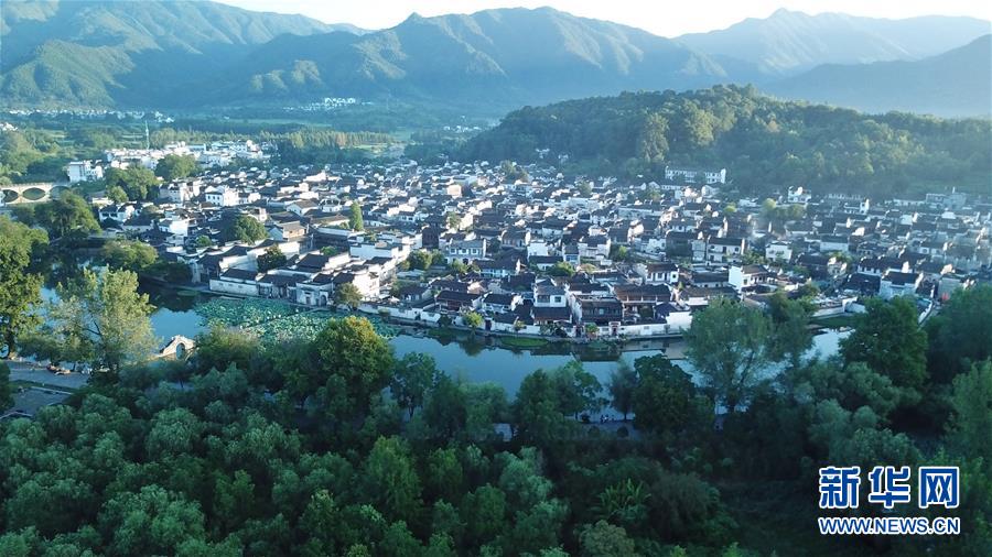 這是8月4日無(wú)人機(jī)拍攝的安徽黟縣宏村風(fēng)景區(qū)晨景。