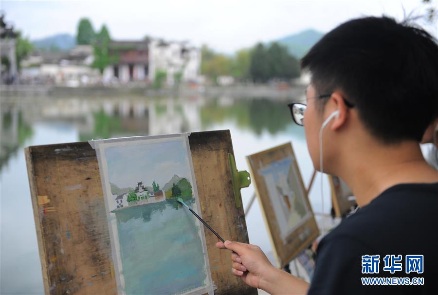 4月24日,繪畫愛好者在西遞風景區(qū)寫生。近日,隨著氣溫升高,位于安徽省黟縣的古村落西遞和宏村春意盎然,景色如畫。大批繪畫愛好者前來寫生,用畫筆描繪古村春色。 新華社記者 任鵬飛 攝