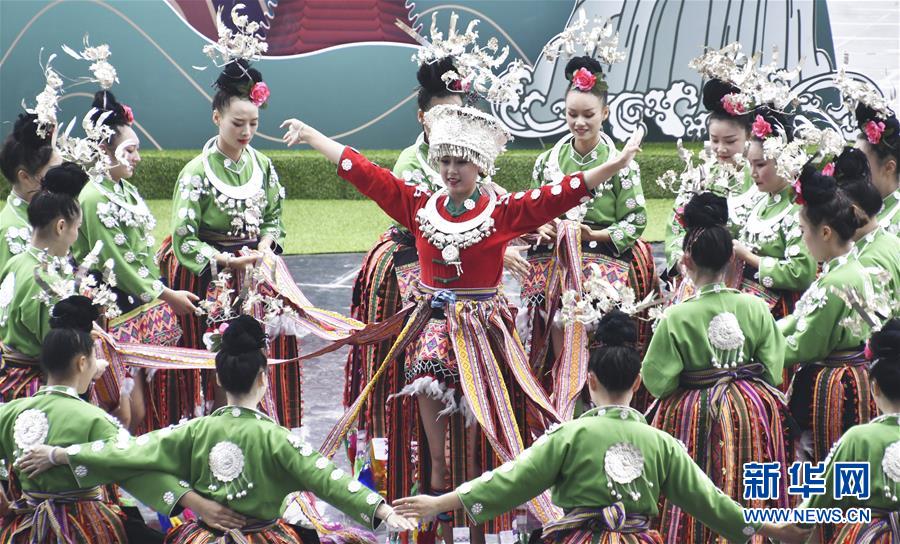 8月4日,來自貴州省黔東南苗族侗族自治州的演員在表演民族歌舞。新華社記者 李欣 攝