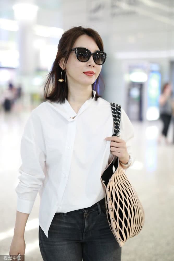 陳數(shù)穿白襯衫知性淺笑甜美迷人 架黑超拎漁網(wǎng)紋展職場(chǎng)女性魅力