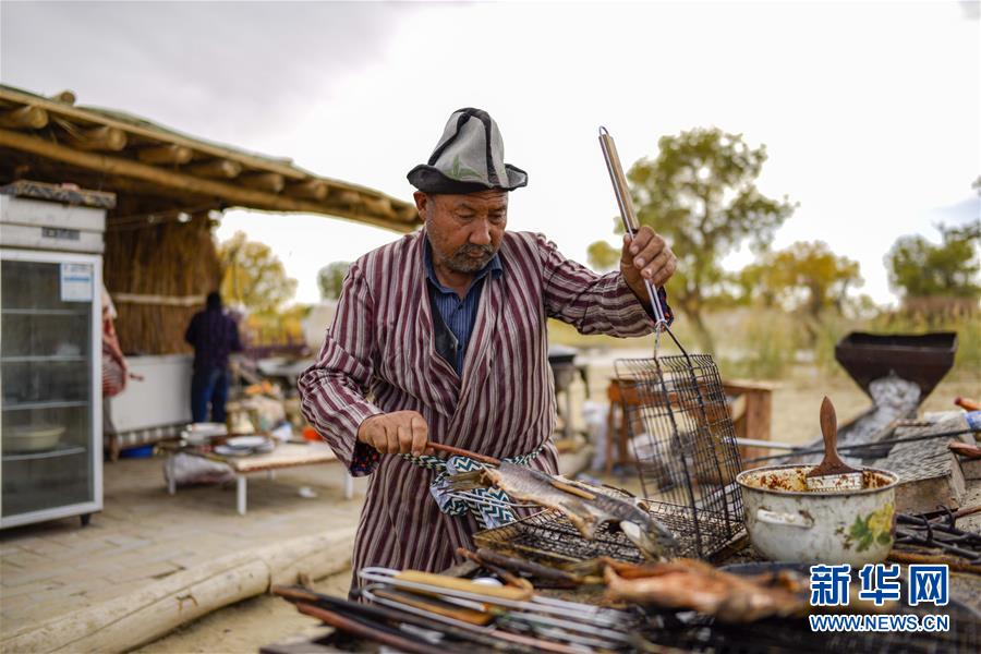 羅布人村寨位于新疆巴音郭楞蒙古自治州尉犁縣,塔里木河從這里流過,沙漠、胡楊、湖泊的奇妙組合吸引了不少游客。生活在這里的羅布人阿木東·艾不東更成為大家關(guān)注的焦點(diǎn)。 阿木東·艾不東61歲,聲音洪亮,面色紅潤,平時喜歡穿著羅布麻紡織而成的對襟長袍和羊毛氈制成的船形帽子,這是羅布人的傳統(tǒng)裝扮。 如今,許多羅布人不再以打魚為生,他們有的放牧,有的種植,有的開設(shè)店鋪……像阿木東一樣在沙漠中漁獵的羅布人已經(jīng)很少了。 制作羅布人傳統(tǒng)美食——紅柳烤魚是阿木東的拿手絕活。一根紅柳,穿起一條野魚,起一堆炭火,撒少許鹽巴,就可以靜待皮焦肉嫩的紅柳烤魚了。除了傳統(tǒng)口味外,阿木東對羅布烤魚進(jìn)行了改良?!拔颐刂屏艘环N烤魚醬,里面除了辣椒、鹽巴、孜然,還有其他佐料?!碑?dāng)問起具體是哪些配方時,阿木東笑著說:“還有就是塔里木河的味道!” 阿木東是一個閑不住的人。旅游旺季過后,他會制作卡盆(胡楊制作的獨(dú)木舟)模型、胡楊筆筒等,等旺季來臨再把這些小物件賣出去。 兩千年前,塔里木河與孔雀河載著天山、昆侖山的雪水,把羅布泊充盈得煙波浩渺。羅布人靠羅布泊水域和周圍的濕地及原始胡楊林繁衍生息。后來,塔里木河下游河床被風(fēng)沙淤塞,干旱斷絕了綠色。2001年,塔里木河流域近期綜合治理項目啟動。隨著下游河道兩岸地下水位的抬升,相當(dāng)數(shù)量的胡楊從死亡的邊緣“醒來”,重新護(hù)佑這里的綠洲與百姓。 近幾年,阿木東生活的地方基礎(chǔ)設(shè)施大為改善,柏油馬路修到了塔里木河畔。前來領(lǐng)略大漠胡楊的游客也越來越多。據(jù)了解,截至7月底,尉犁縣今年已接待游客78萬人次,旅游總收入超過1.1億元,同比分別增長63.14%和119.42%。 新華社記者 趙戈 攝