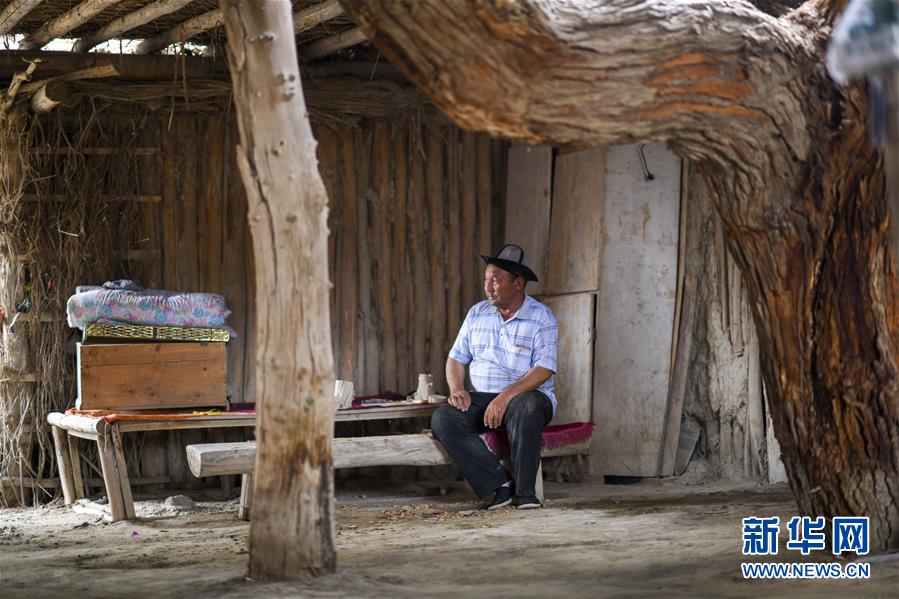 在羅布人村寨,阿木東·艾不東在家中休息(6月21日攝)。新華社記者 趙戈 攝
